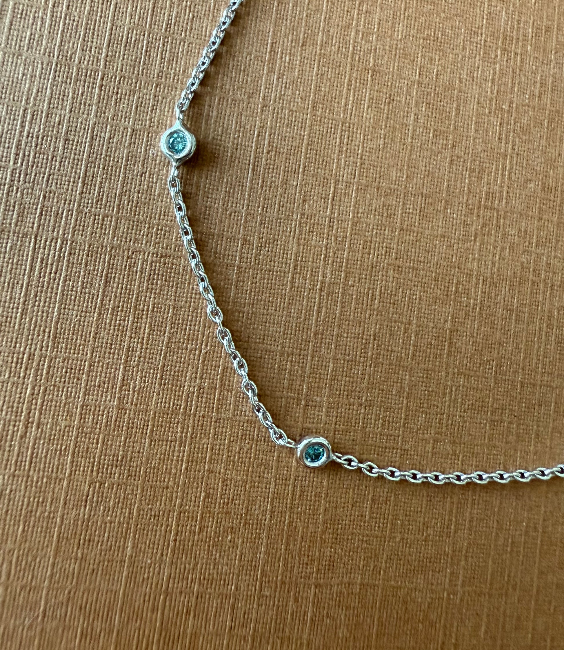 14k solid white gold and genuine blue diamonds station bracelet